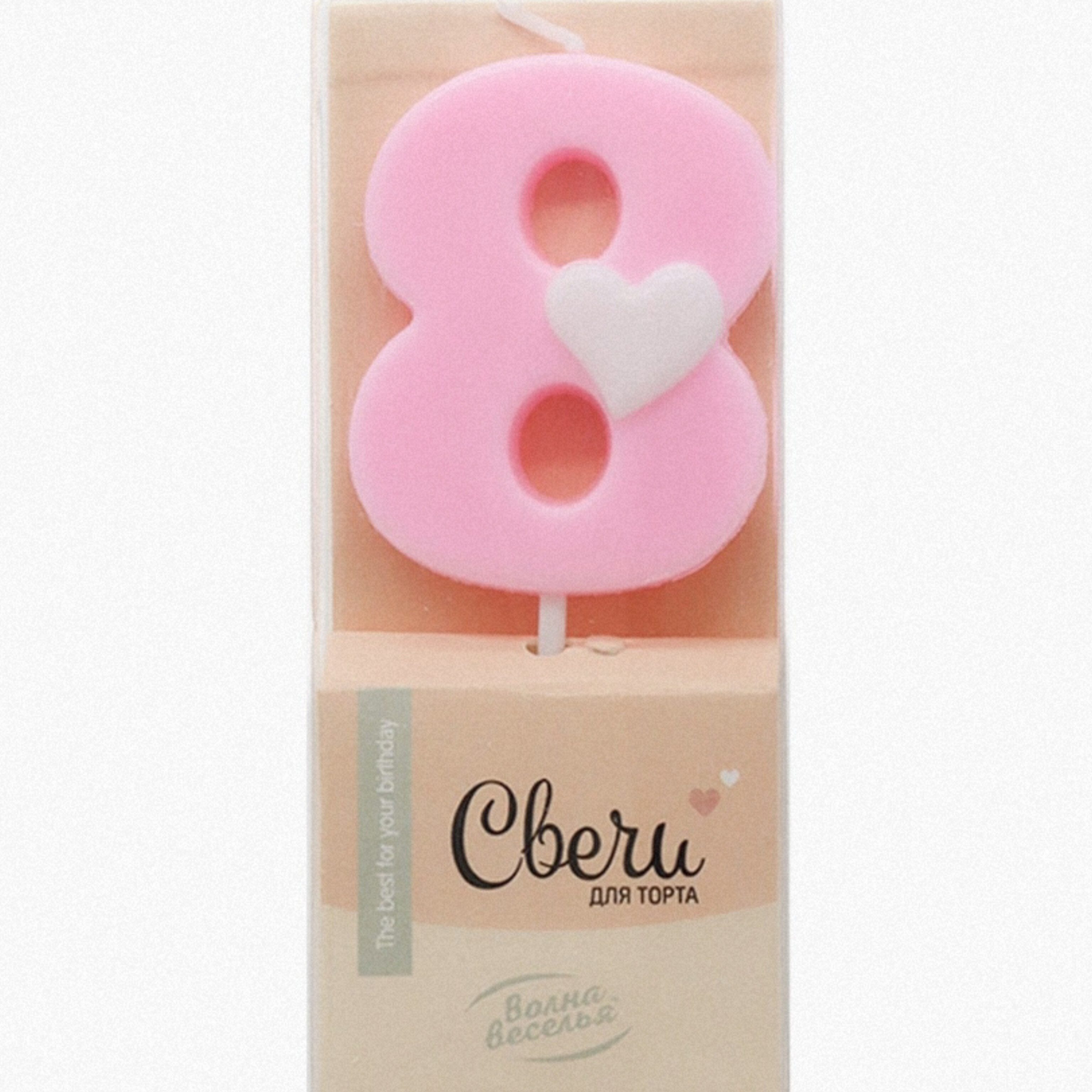 Свеча-цифра Розовая с белым сердечком "8" (ТМ "Волна веселья", Китай)