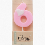 Свеча-цифра Розовая с белым сердечком "6" (ТМ "Волна веселья", Китай)