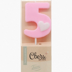 Свеча-цифра Розовая с белым сердечком "5" (ТМ "Волна веселья", Китай)