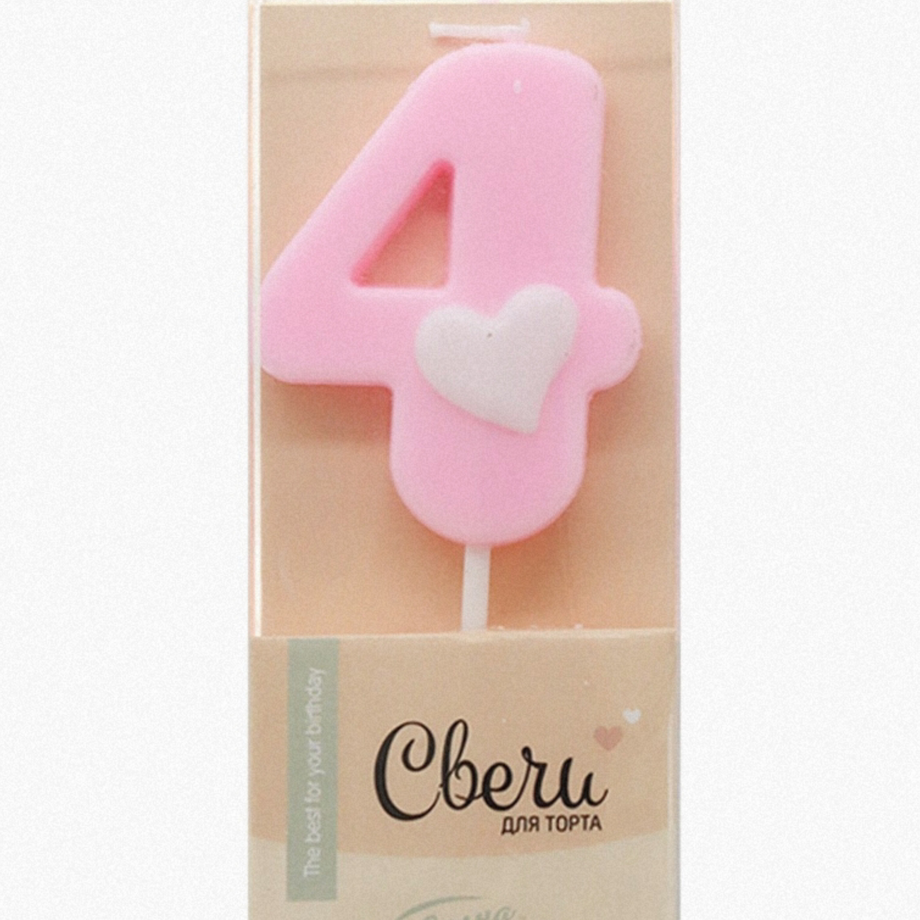 Свеча-цифра Розовая с белым сердечком "4" (ТМ "Волна веселья", Китай)