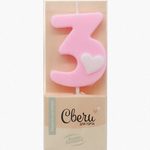 Свеча-цифра Розовая с белым сердечком "3" (ТМ "Волна веселья", Китай)