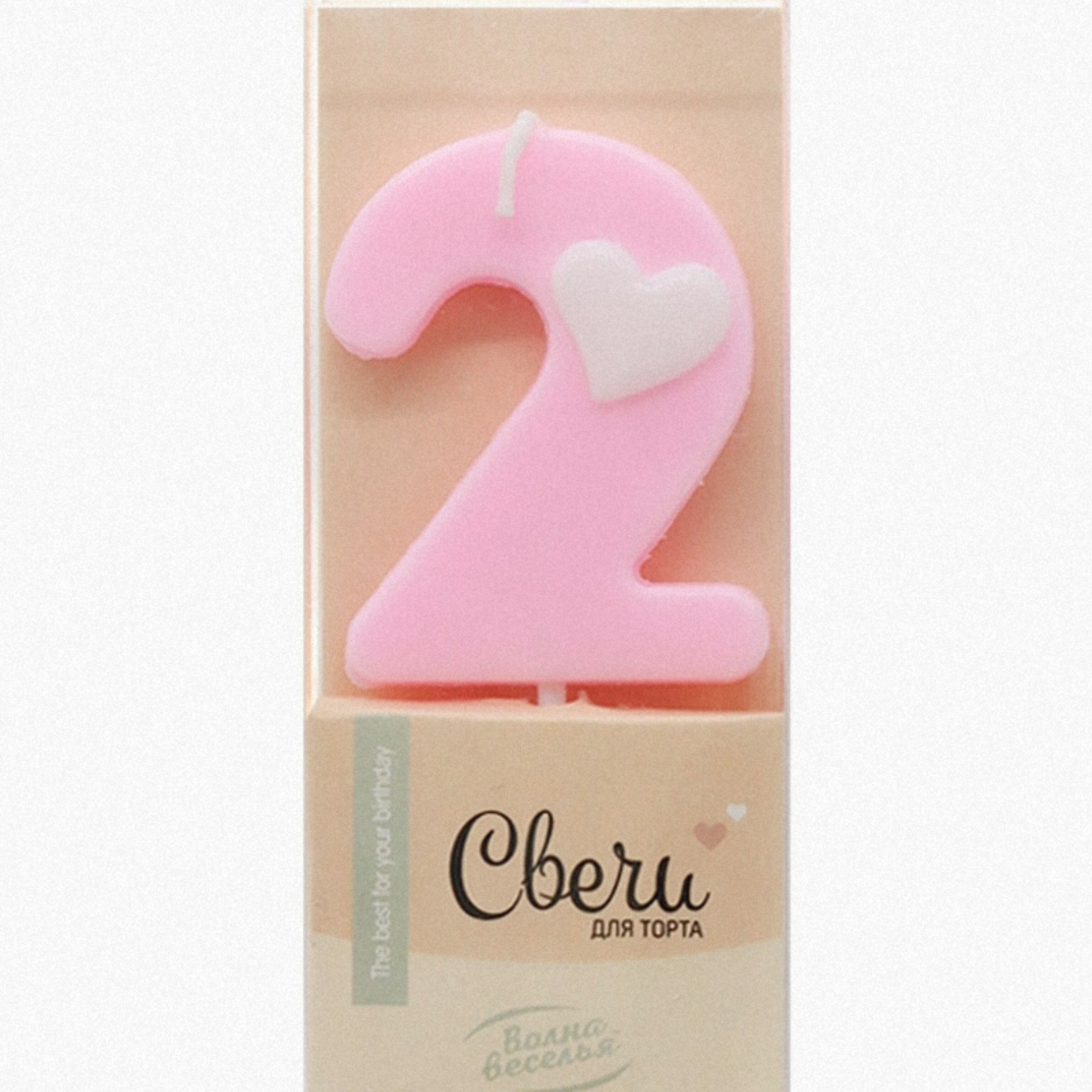 Свеча-цифра Розовая с белым сердечком "2" (ТМ "Волна веселья", Китай)