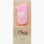 Свеча-цифра Розовая с белым сердечком "1" (ТМ "Волна веселья", Китай)