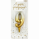 Свеча-цифра золото/серебро градиент "9" (Россия)