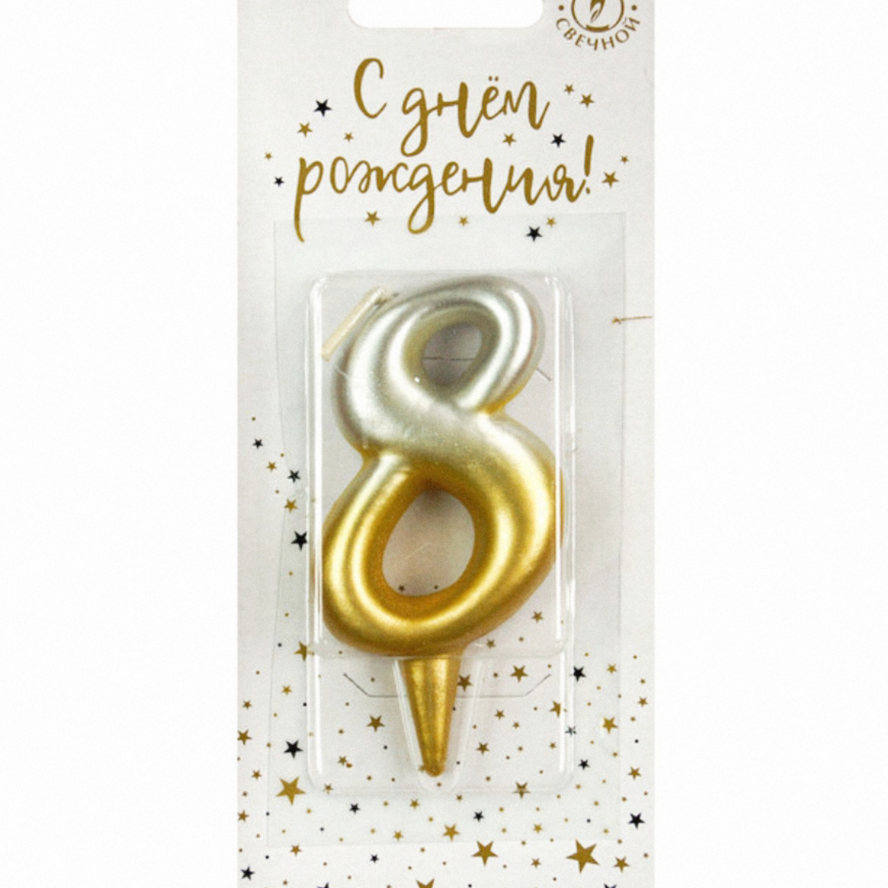 Свеча-цифра золото/серебро градиент "8" (Россия)