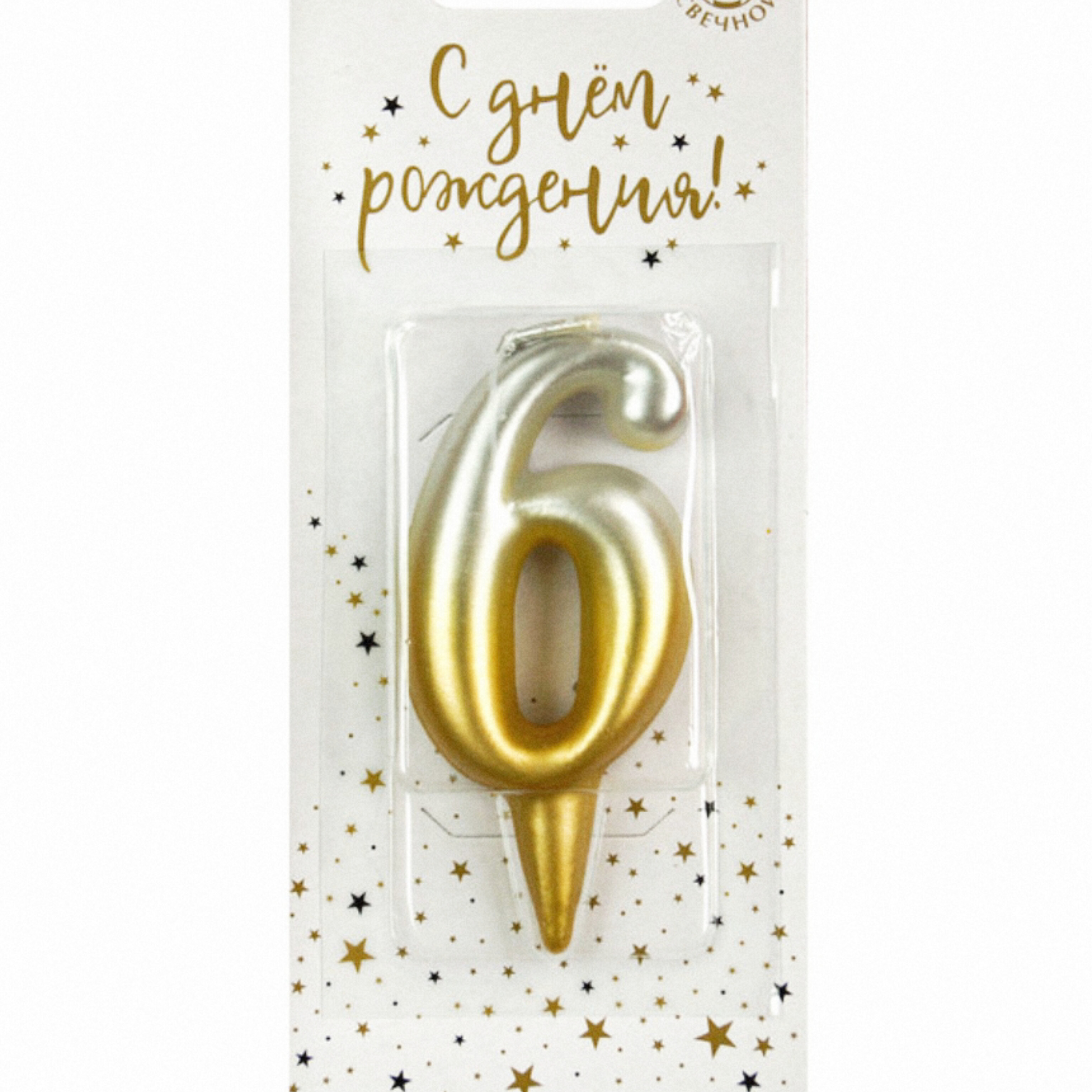 Свеча-цифра золото/серебро градиент "6" (Россия)