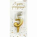 Свеча-цифра золото/серебро градиент "5" (Россия)