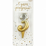 Свеча-цифра золото/серебро градиент "3" (Россия)