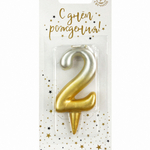 Свеча-цифра золото/серебро градиент "2" (Россия)
