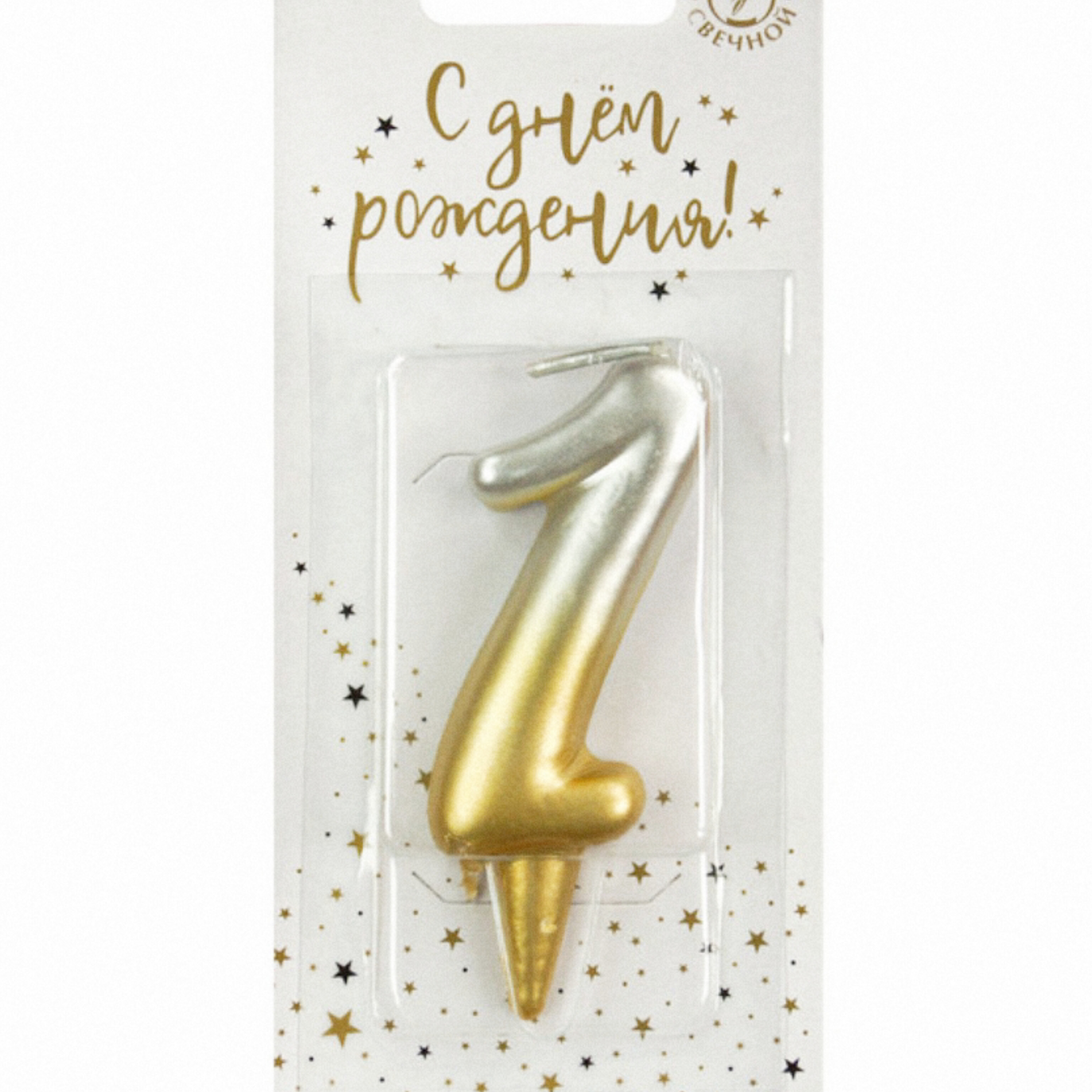 Свеча-цифра золото/серебро градиент "1" (Россия)