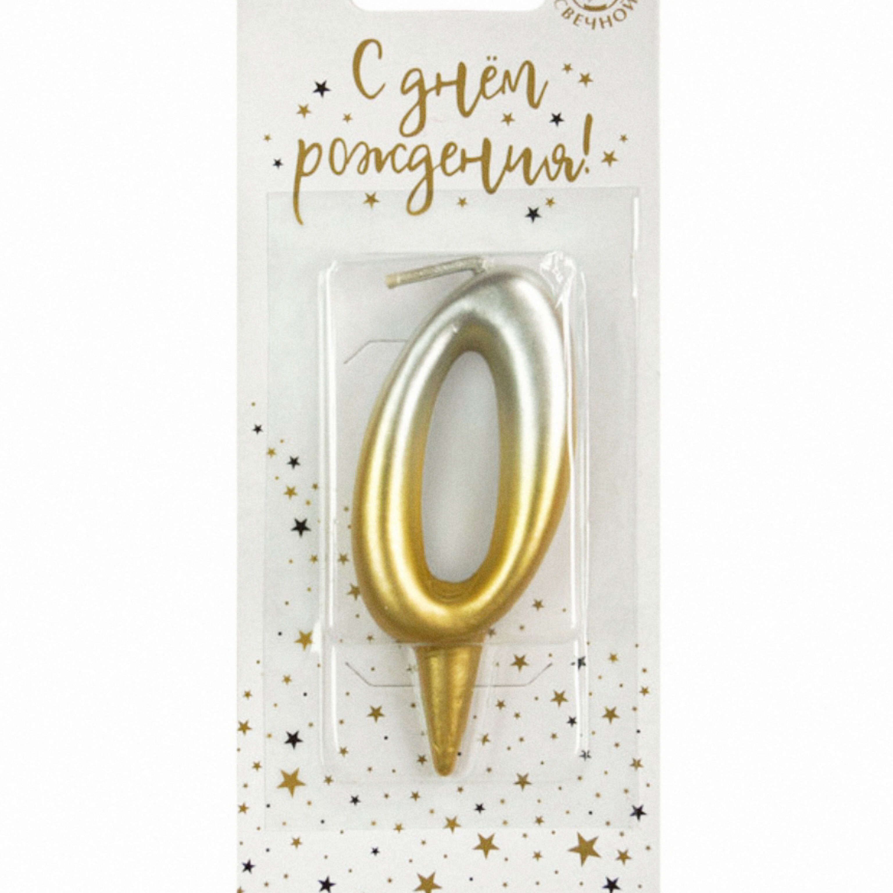 Свеча-цифра золото/серебро градиент "0" (Россия)